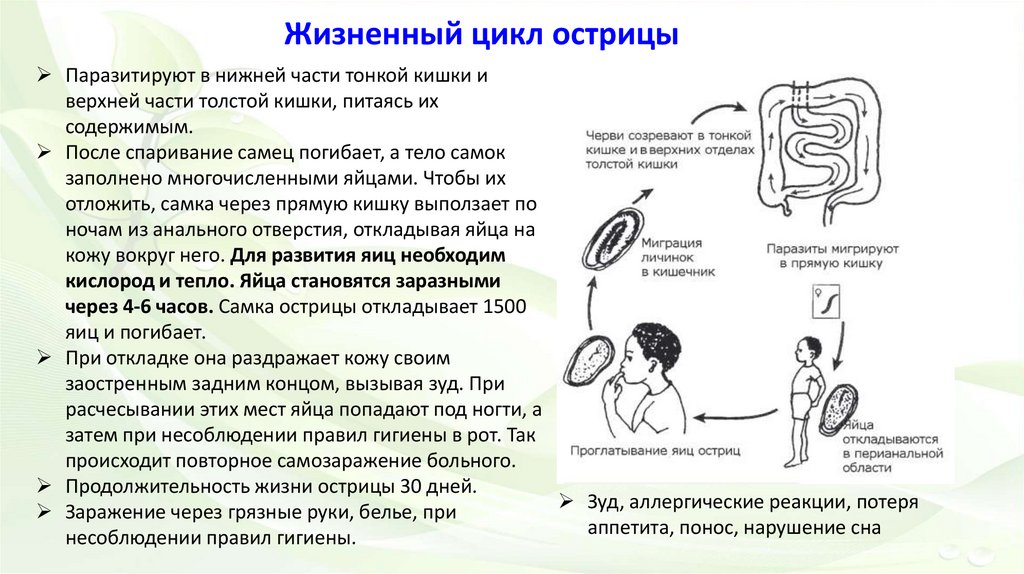 Жизненный цикл острицыПаразитируют в нижней части тонкой кишки и