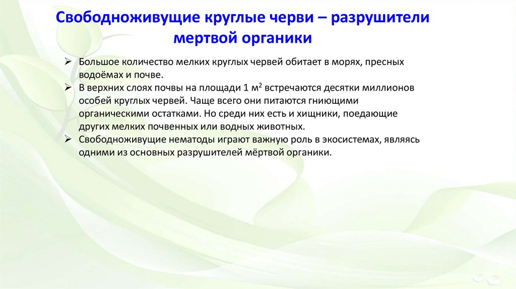 Свободноживущие нематоды играют важную роль в экосистемах, являясь