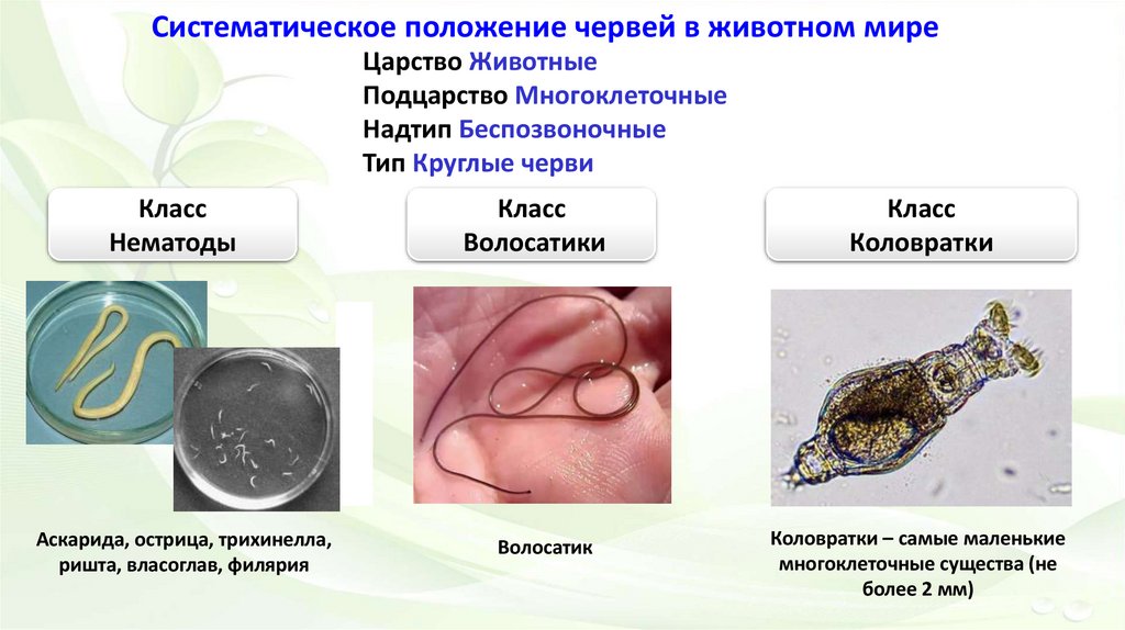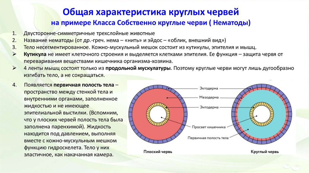 Общая характеристика круглых червейна примере Класса Собственно круглые черви ( Нематоды)