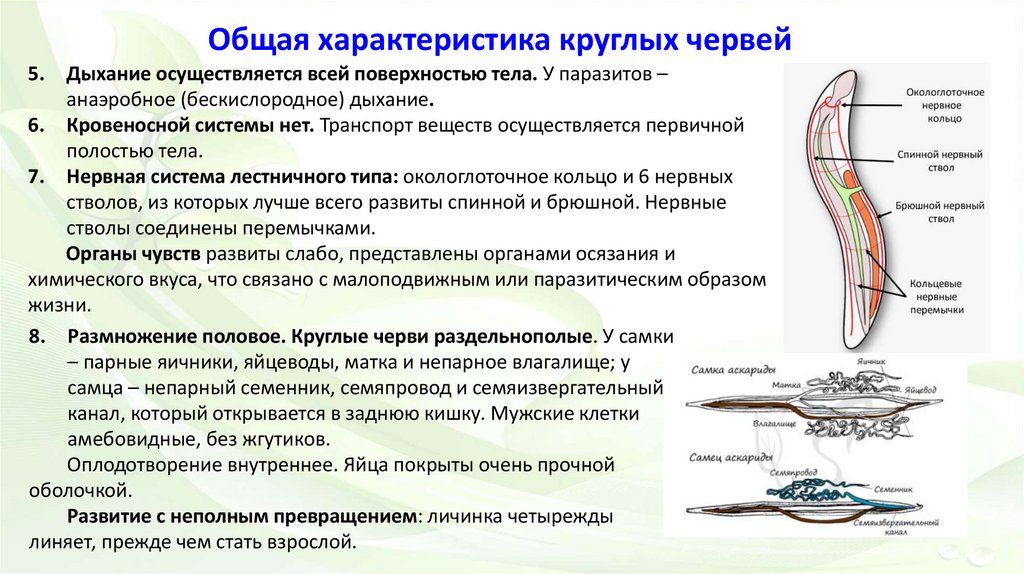 8. Размножение половое. Круглые черви раздельнополые. У самки