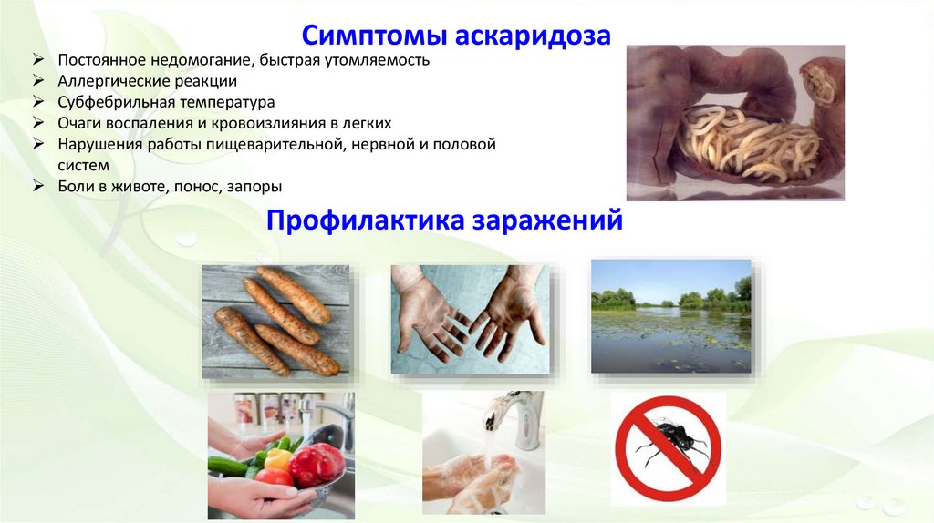 Симптомы аскаридозаПостоянное недомогание, быстрая утомляемость