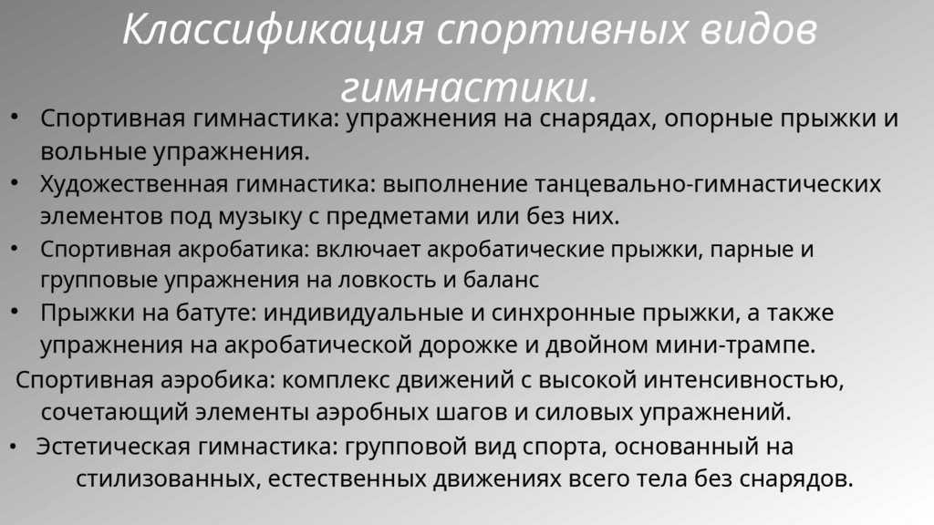 Классификация спортивных видов гимнастики.