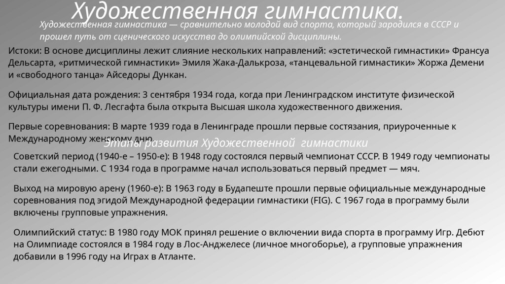 Этапы развития Художественной гимнастики