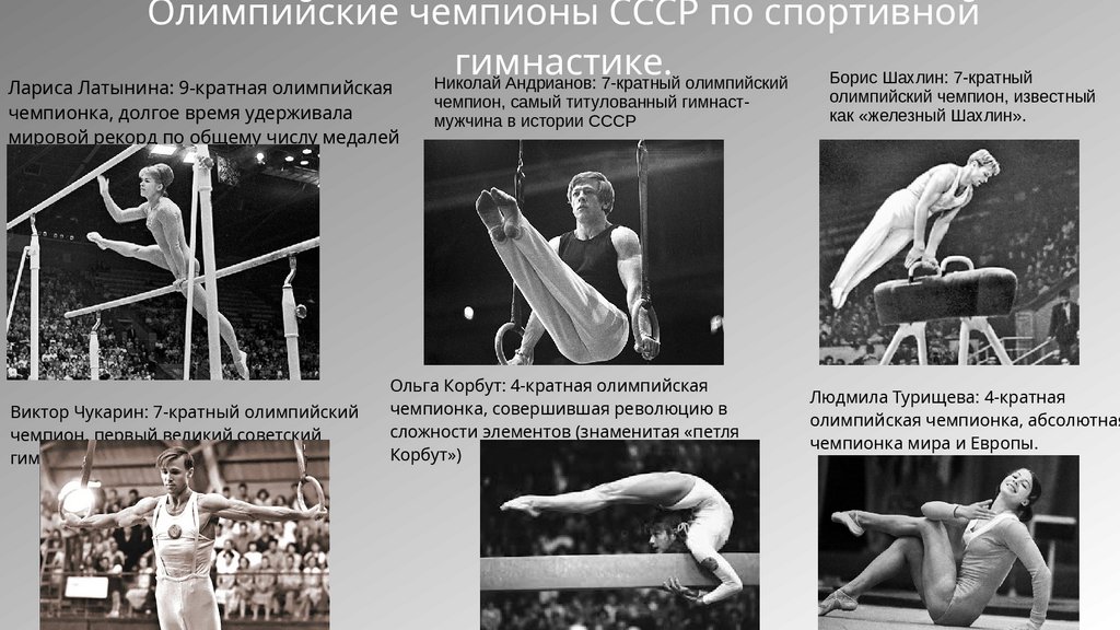 благодаря таким атлетам, как Лариса Латынина и Виктор Чукарин.