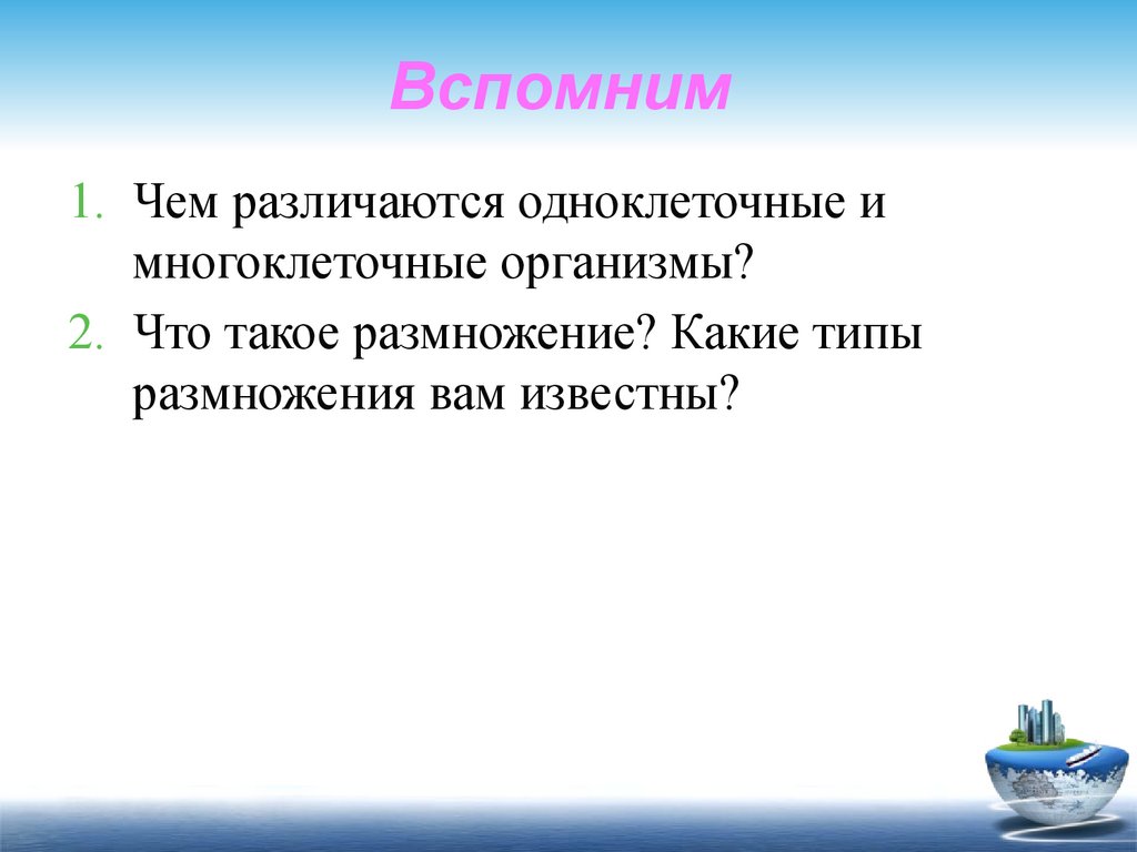1. Чем различаются одноклеточные имногоклеточные организмы?