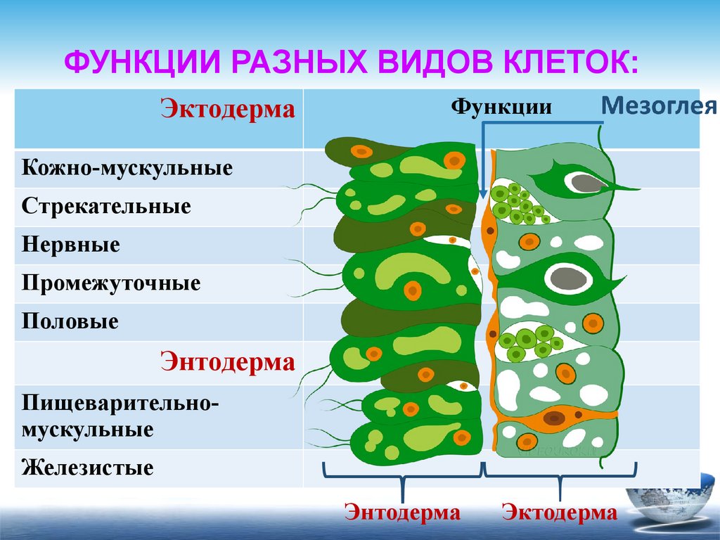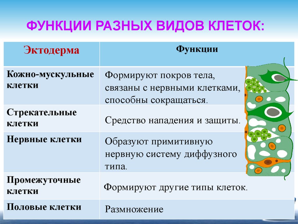 ФУНКЦИИ РАЗНЫХ ВИДОВ КЛЕТОК:Эктодерма