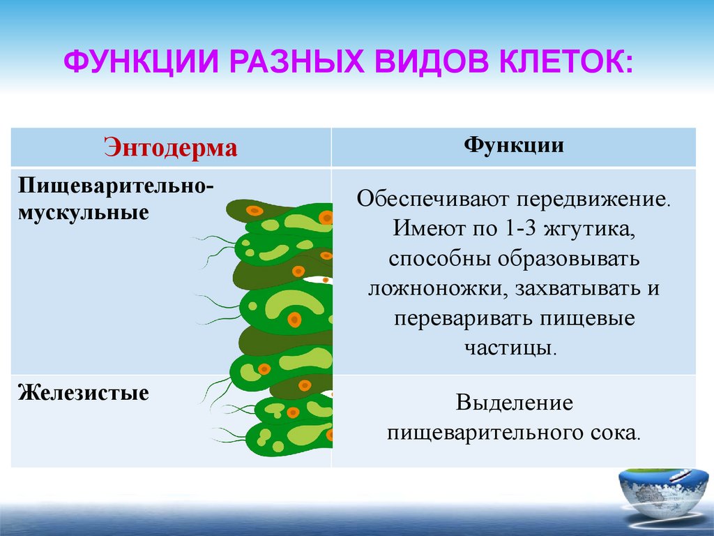 ФУНКЦИИ РАЗНЫХ ВИДОВ КЛЕТОК:Энтодерма