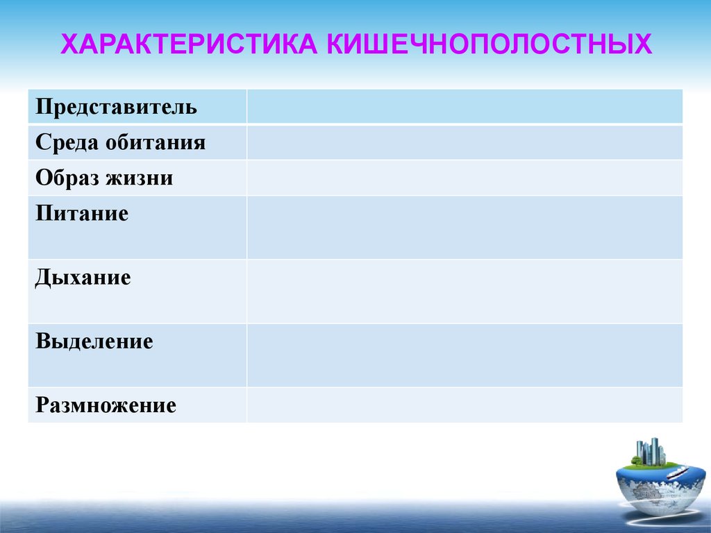 ХАРАКТЕРИСТИКА КИШЕЧНОПОЛОСТНЫХПредставитель
