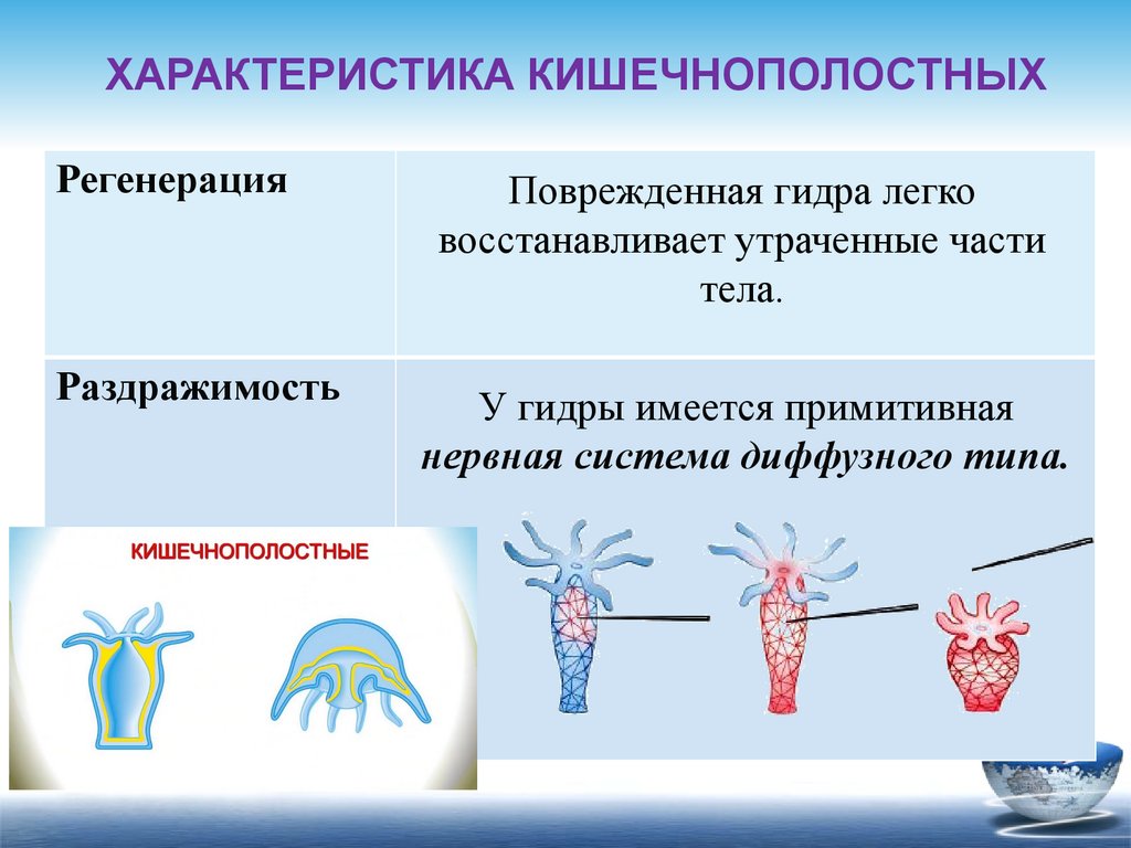 ХАРАКТЕРИСТИКА КИШЕЧНОПОЛОСТНЫХРегенерация