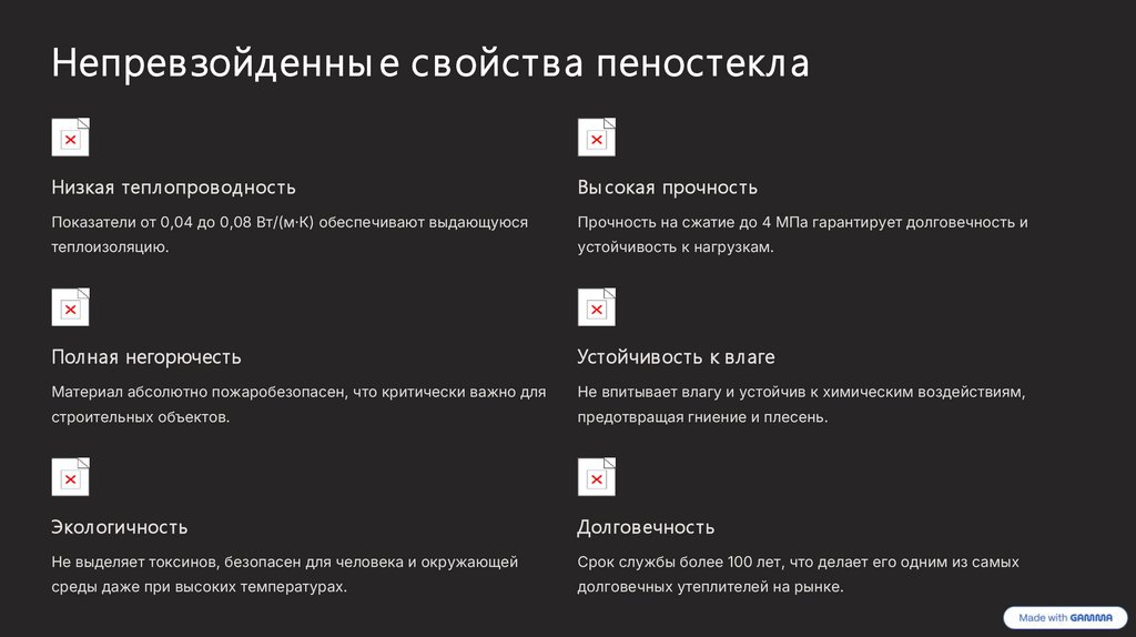 Непрев зойденны е свойства пеностекл аНизкая тепл опроводность