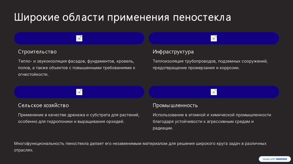 Многофункциональность пеностекла делает его незаменимым материалом для решения широкого круга задач в различных