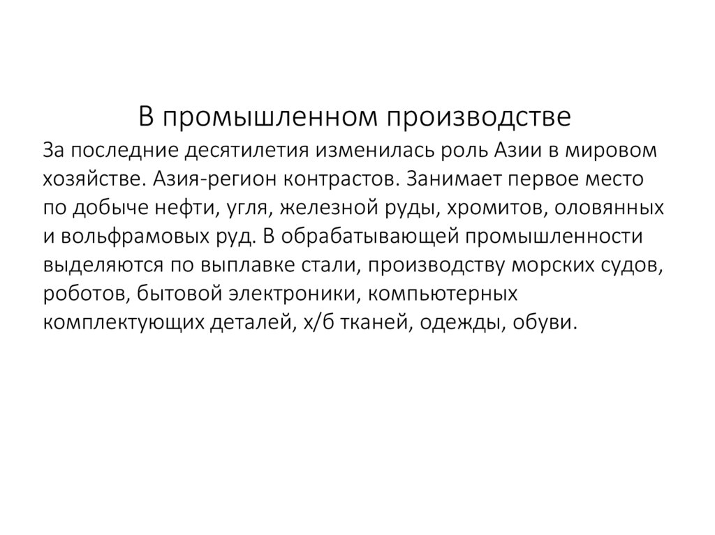 В промышленном производствеЗа последние десятилетия изменилась роль Азии в мировом