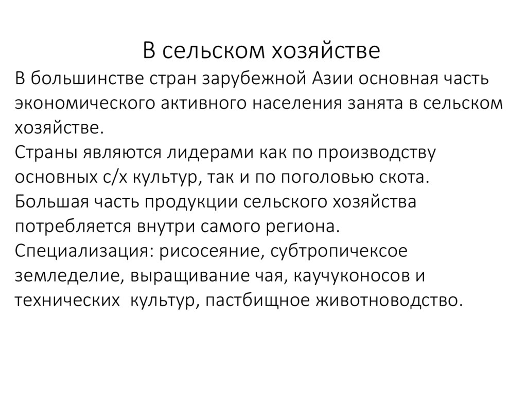 В сельском хозяйствеВ большинстве стран зарубежной Азии основная часть