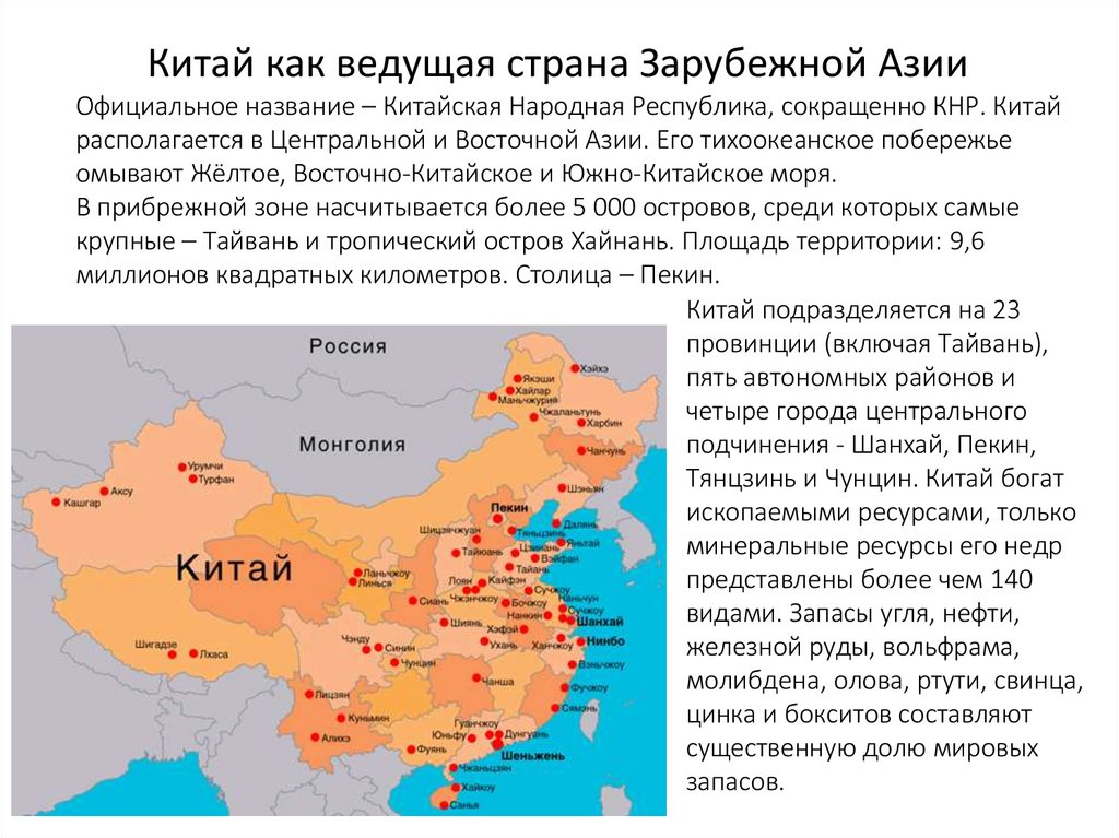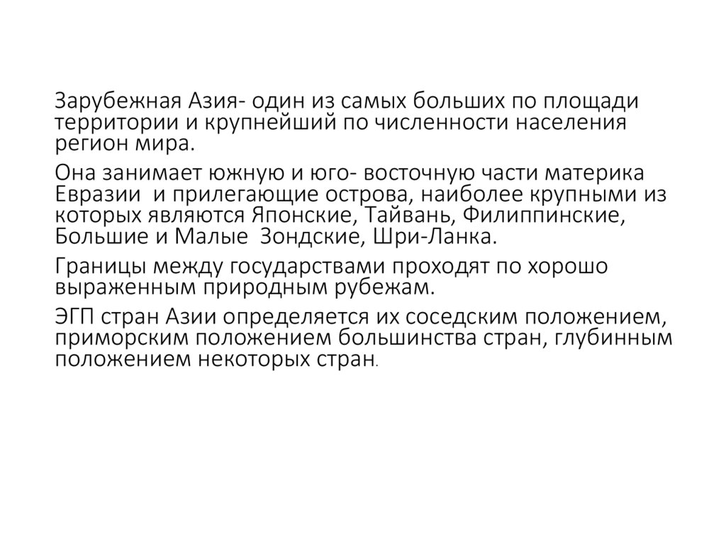 Зарубежная Азия- один из самых больших по площадитерритории и крупнейший по численности населения
