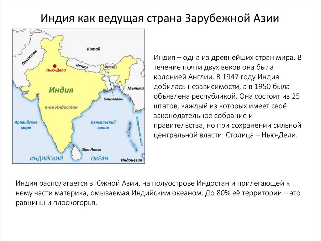 Индия как ведущая страна Зарубежной АзииИндия – одна из древнейших стран мира. В