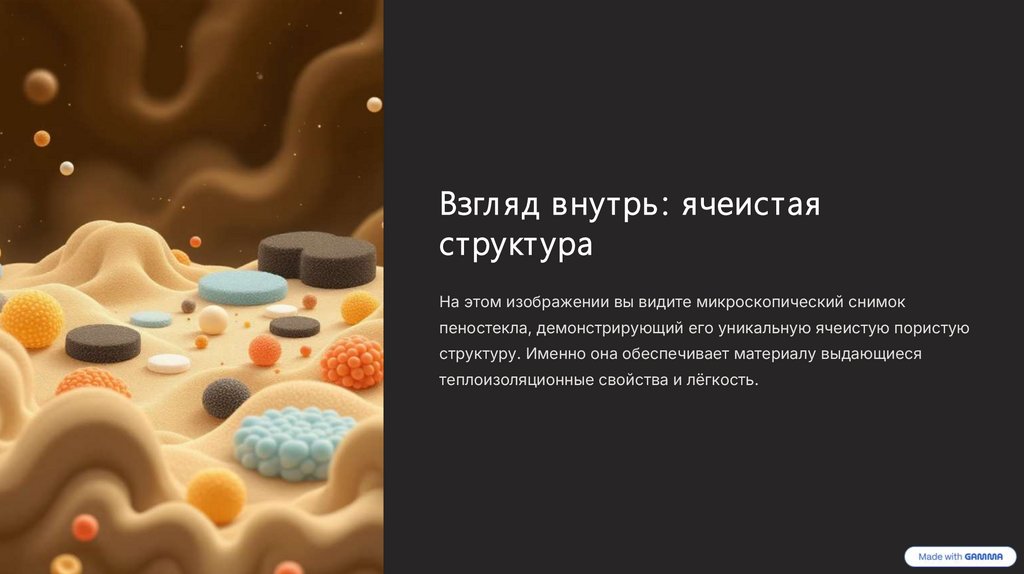 пеностекла, демонстрирующий его уникальную ячеистую пористую