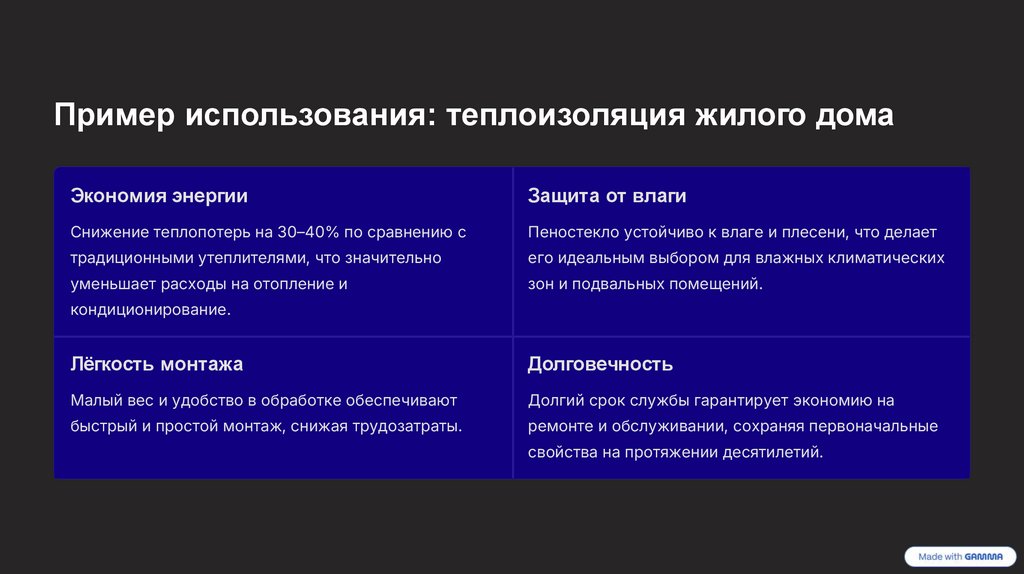Пример использования: теплоизоляция жилого домаЭкономия энергии