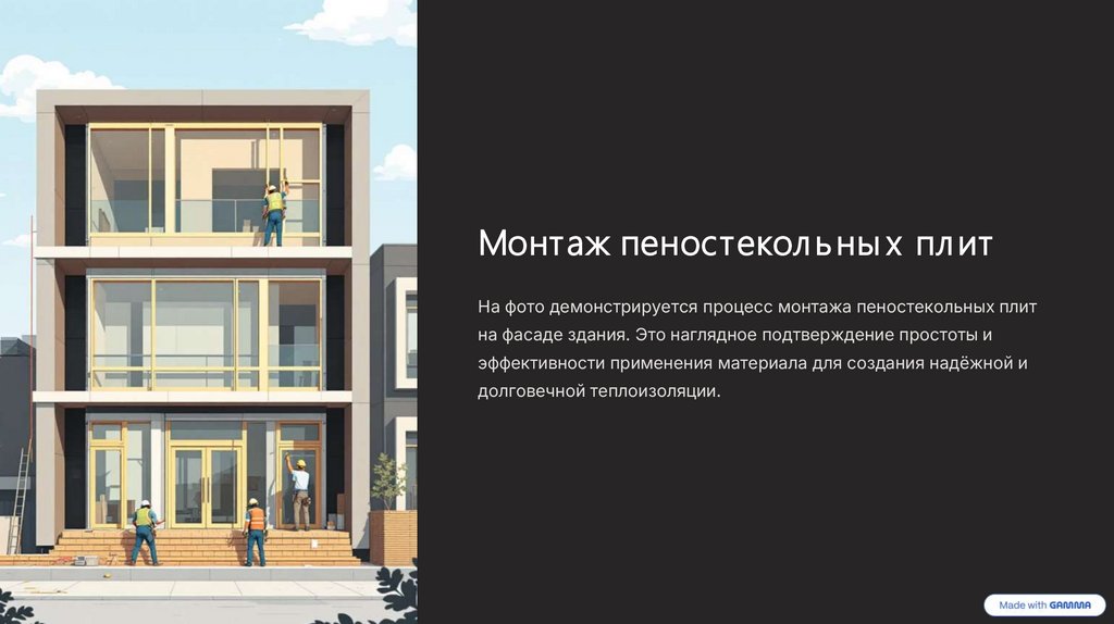 Монтаж пеностекол ь ны х пл итНа фото демонстрируется процесс монтажа пеностекольных плит
