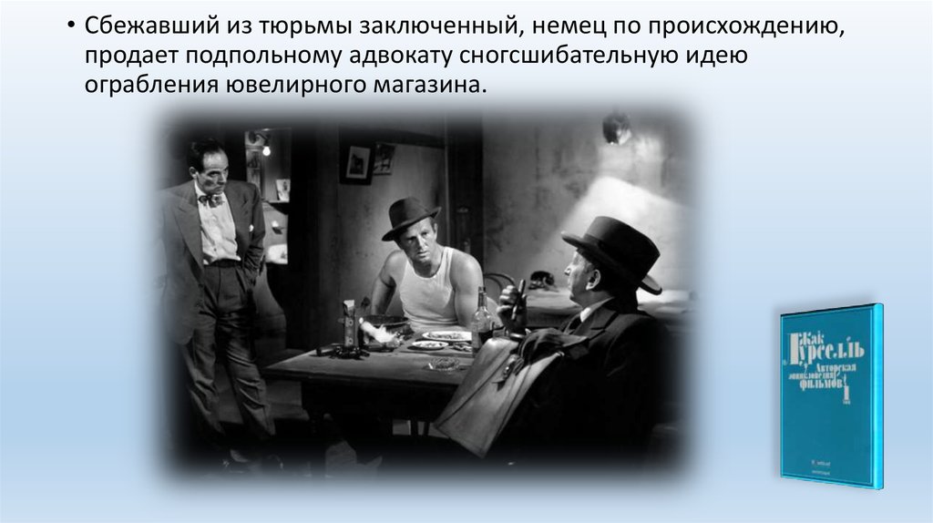 • Сбежавший из тюрьмы заключенный, немец по происхождению,продает подпольному адвокату сногсшибательную идею