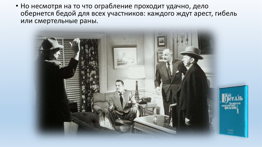 • Но несмотря на то что ограбление проходит удачно, делообернется бедой для всех участников: каждого ждут арест, гибель