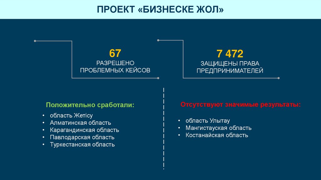 По проекту «Бизнеске жол» отсутствуют значимые кейсы (Улытау, Атырауская, ВКО)