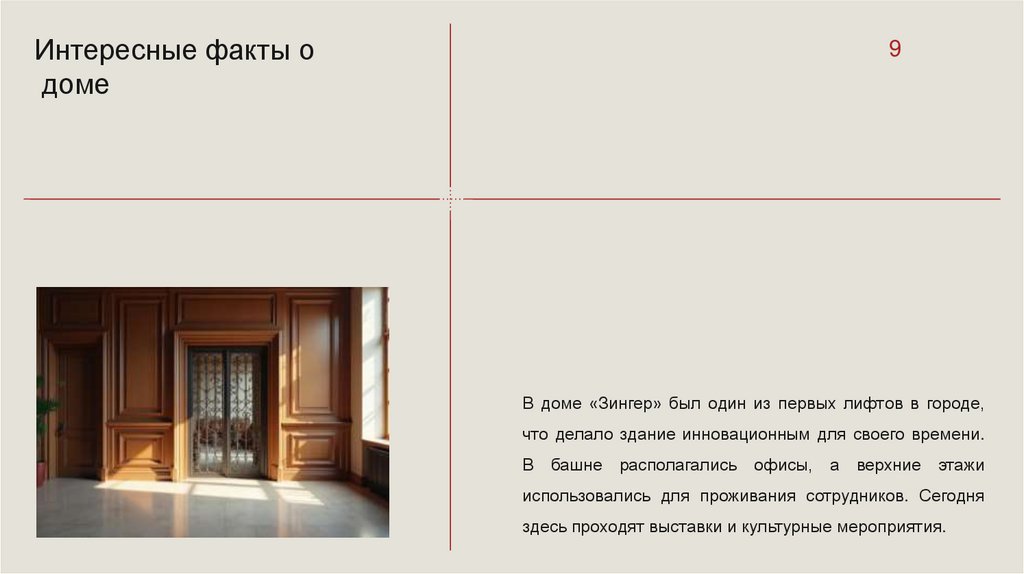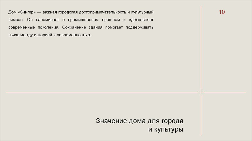 Дом «Зингер» — важная городская достопримечательность и культурныйсимвол. Он напоминает о промышленном прошлом и вдохновляет
