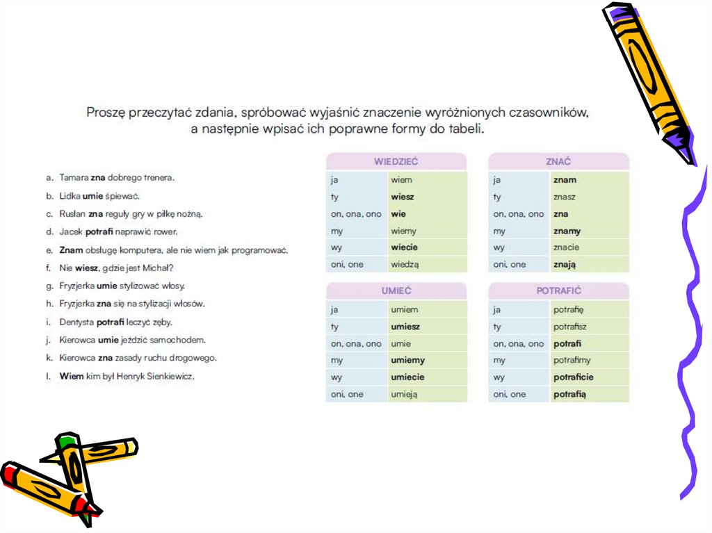 LEKCJA 11Czasowniki wiedzieć,znać,