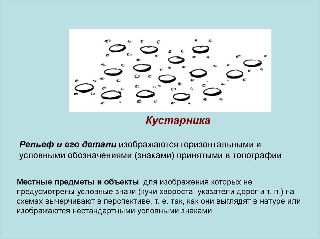 КустарникаРельеф и его детали изображаются горизонтальными и
