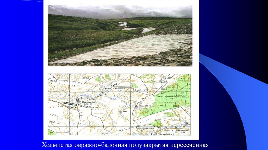 Холмистая овражно-балочная полузакрытая пересеченная13.
