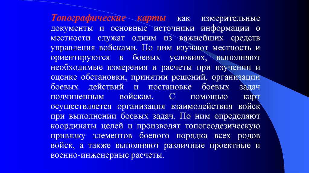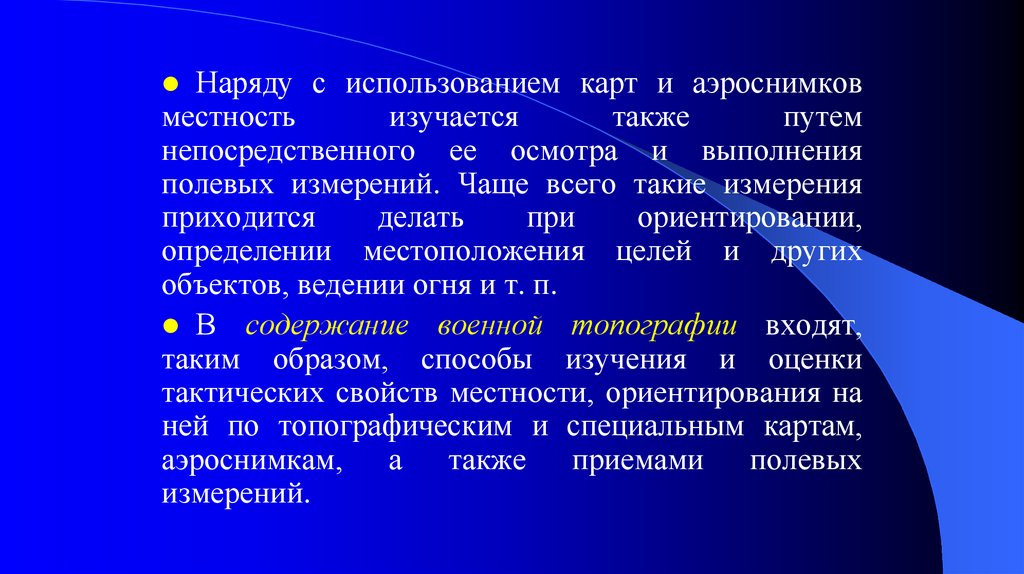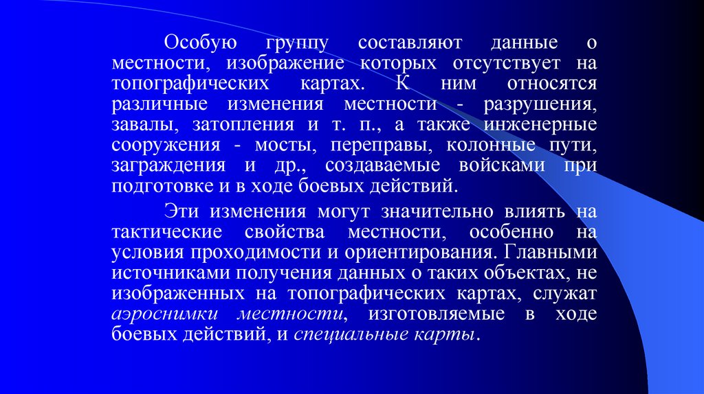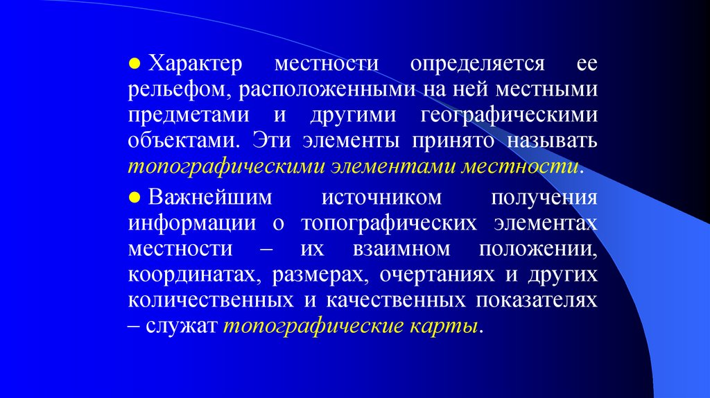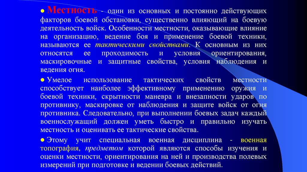 Местность - один из основных и постоянно действующихфакторов боевой обстановки, существенно влияющий на боевую