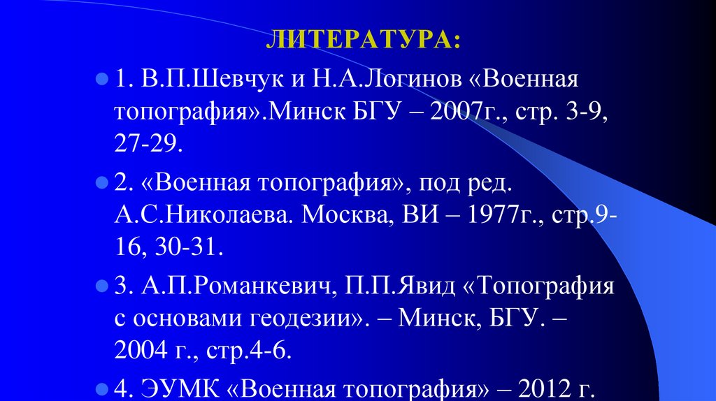 ЛИТЕРАТУРА:1. В.П.Шевчук и Н.А.Логинов «Военная