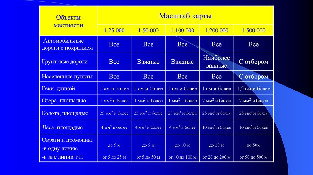 Чем меньше знаменатель, тем крупнее масштаб карты.