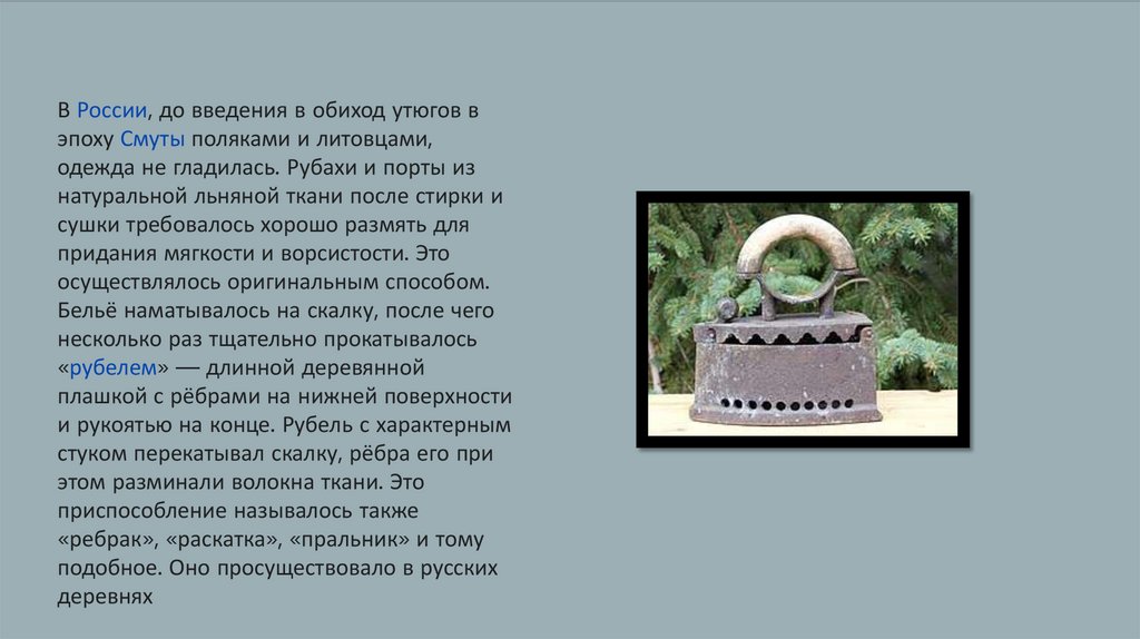 В России, до введения в обиход утюгов вэпоху Смуты поляками и литовцами,