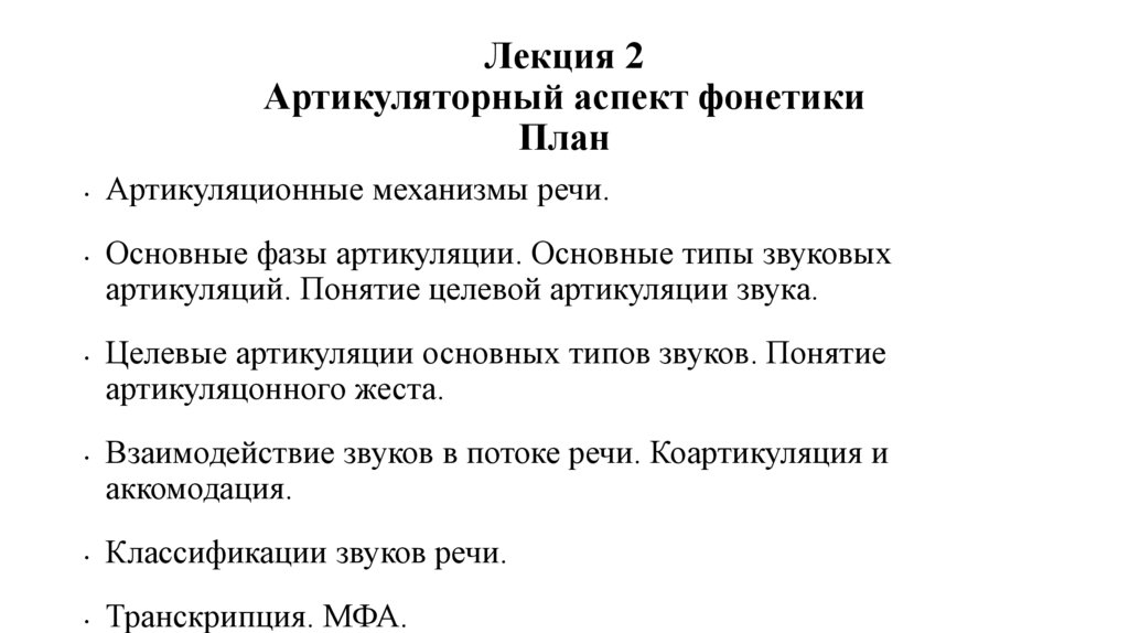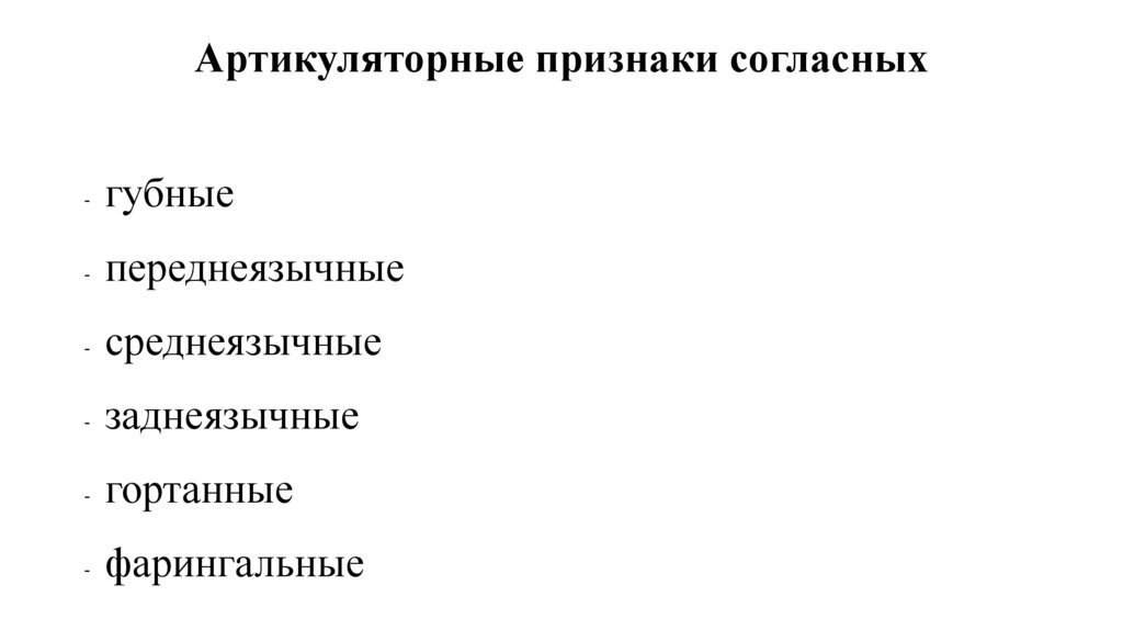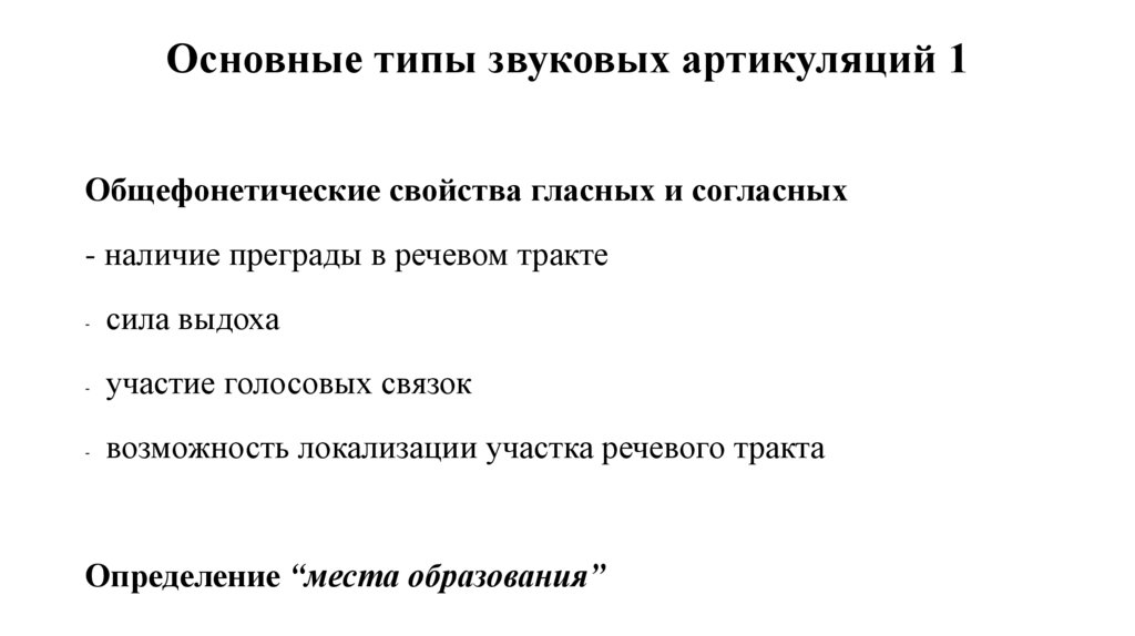 Основные типы звуковых артикуляций 1Общефонетические свойства гласных и согласных