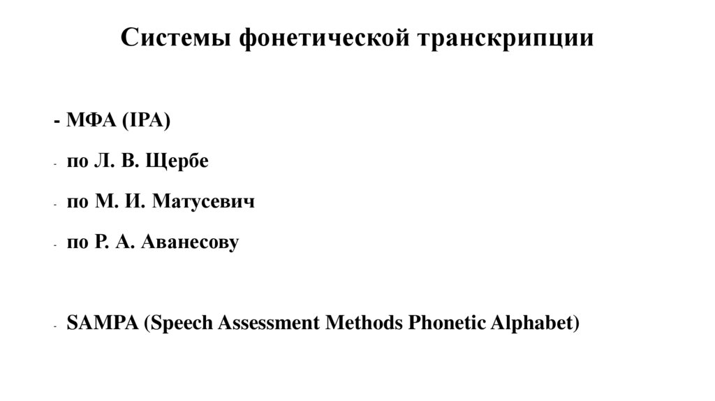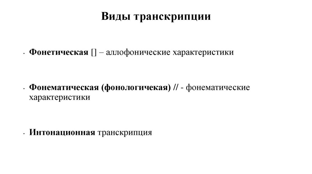 Виды транскрипцииФонетическая [] – аллофонические характеристики
