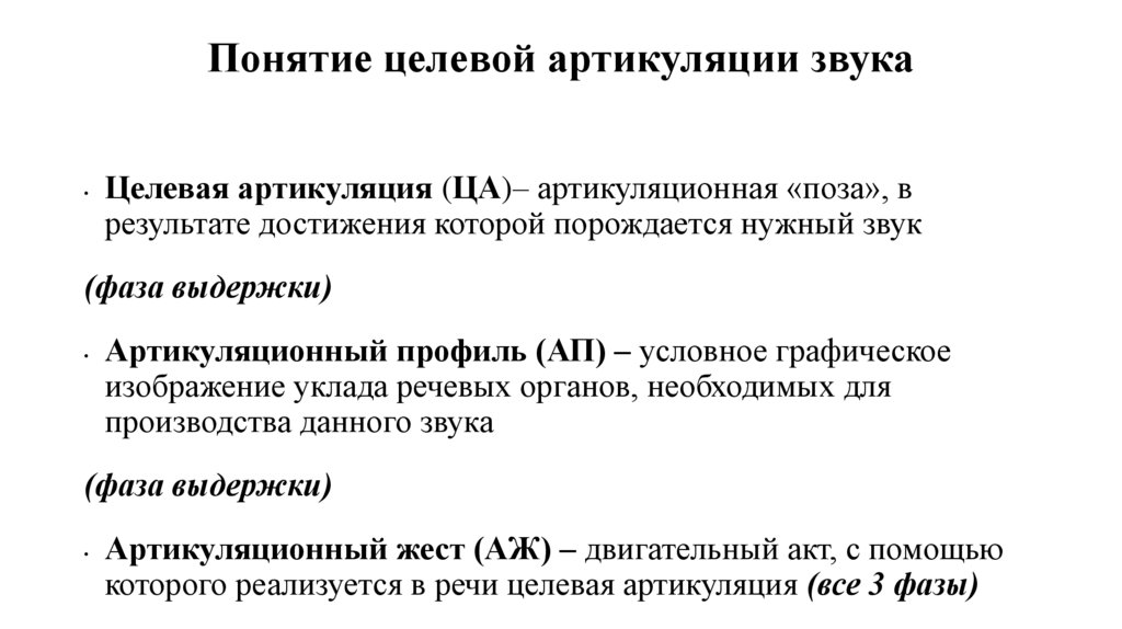 которого реализуется в речи целевая артикуляция (все 3 фазы)