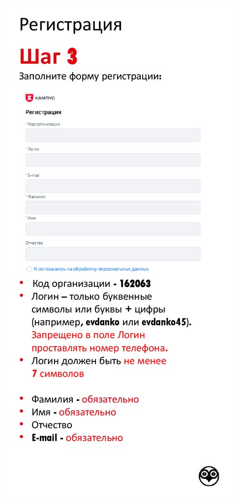по регистрации в Кампус