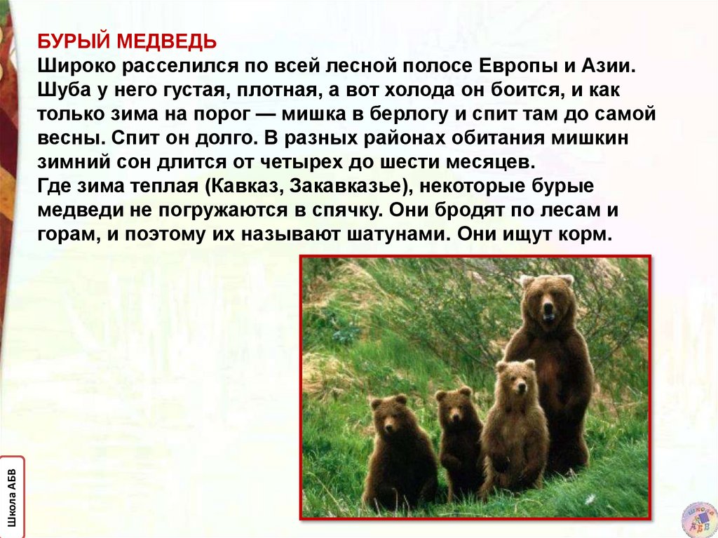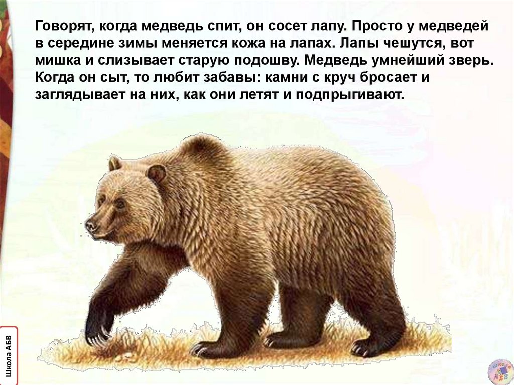 Школа АБВГоворят, когда медведь спит, он сосет лапу. Просто у медведей