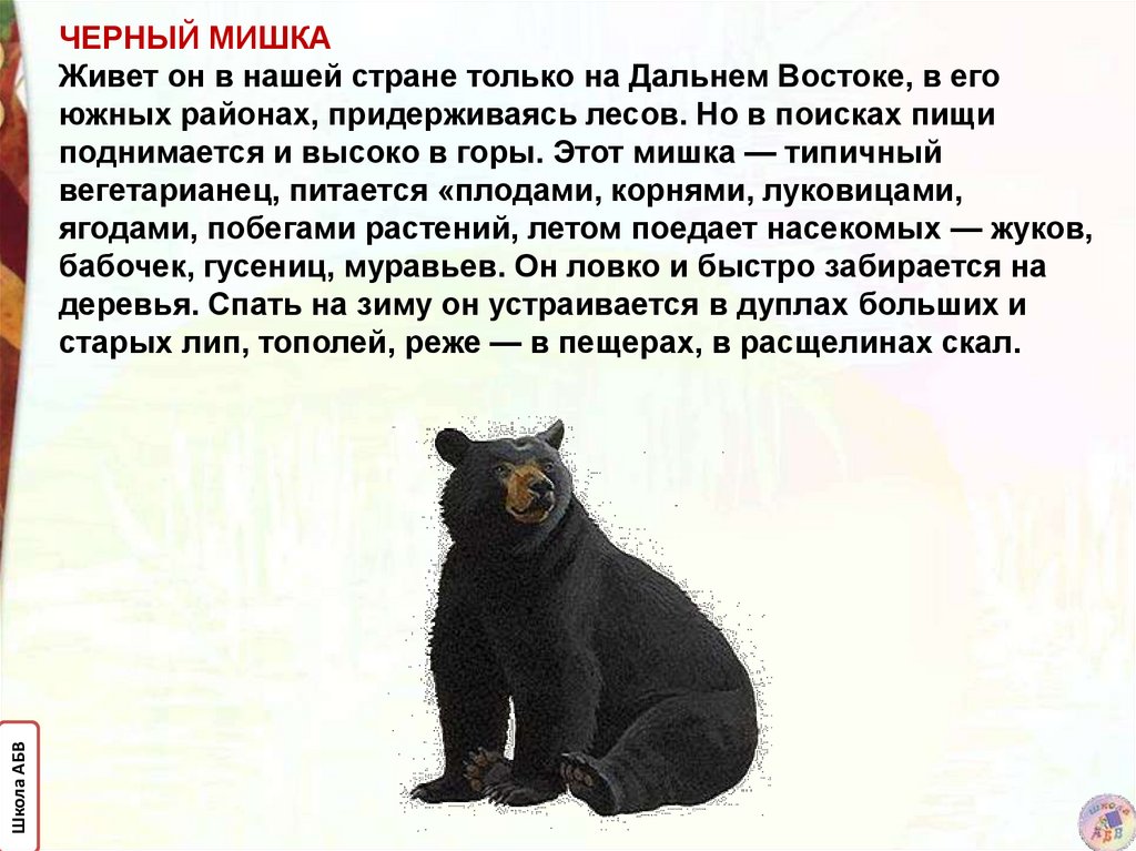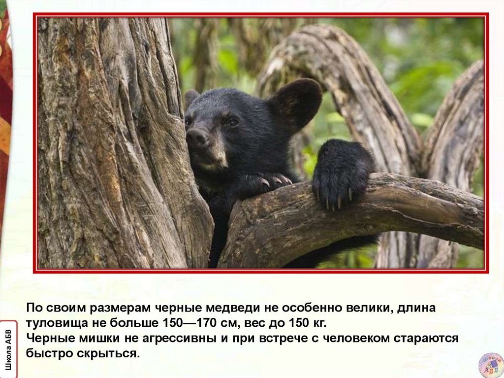 Школа АБВПо своим размерам черные медведи не особенно велики, длина