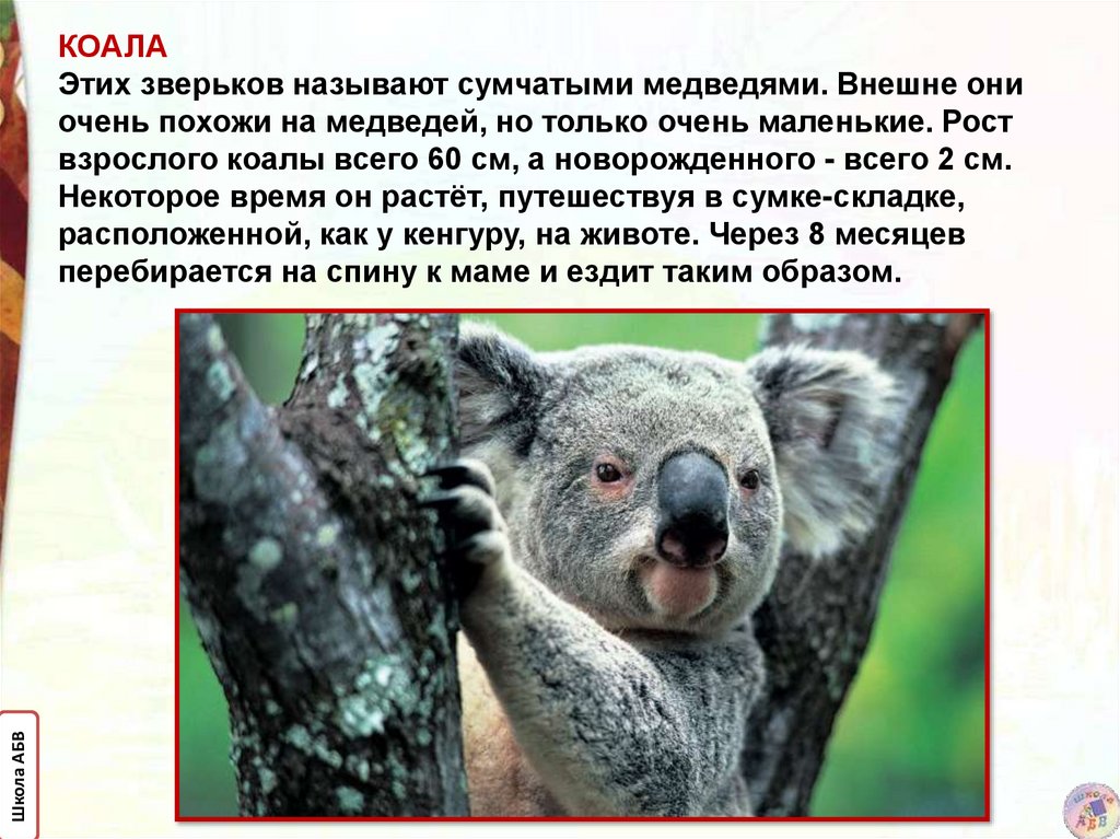 взрослого коалы всего 60 см, а новорожденного - всего 2 см.