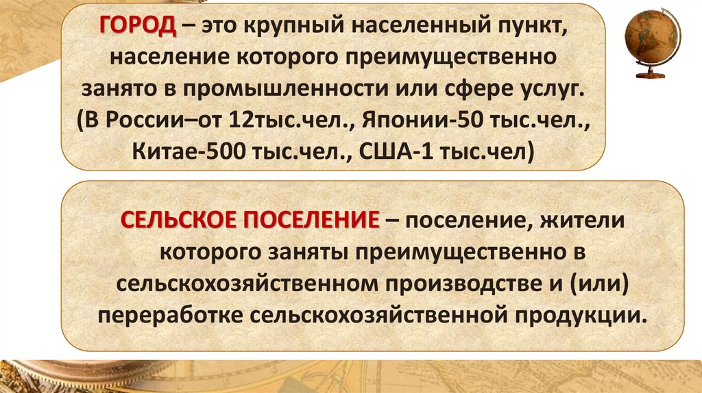 ГОРОД – это крупный населенный пункт,население которого преимущественно