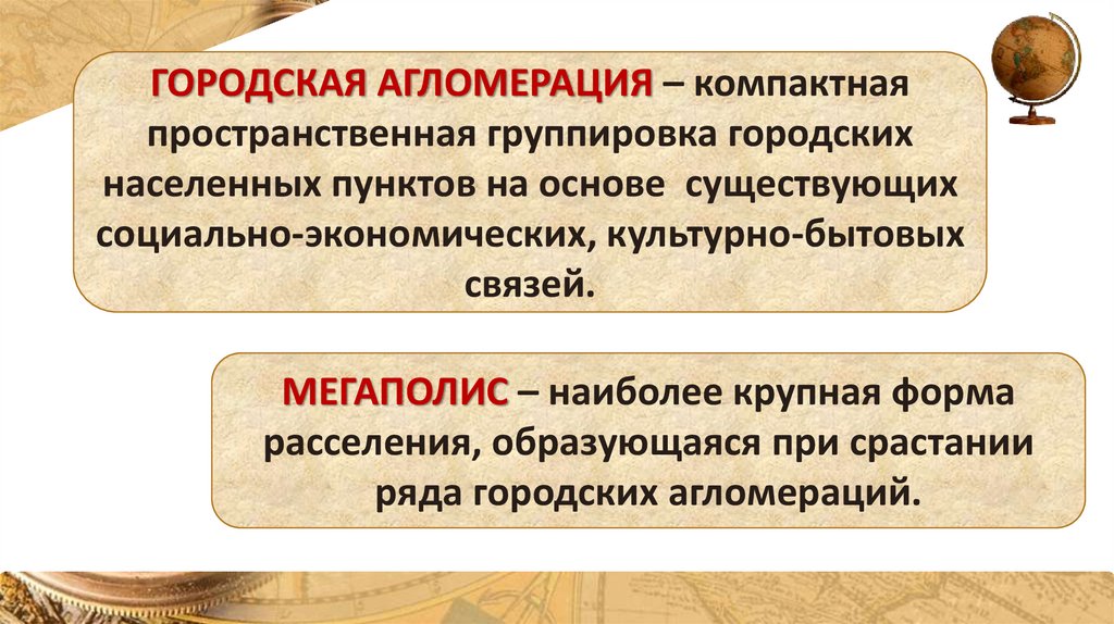 ГОРОДСКАЯ АГЛОМЕРАЦИЯ – компактнаяпространственная группировка городских