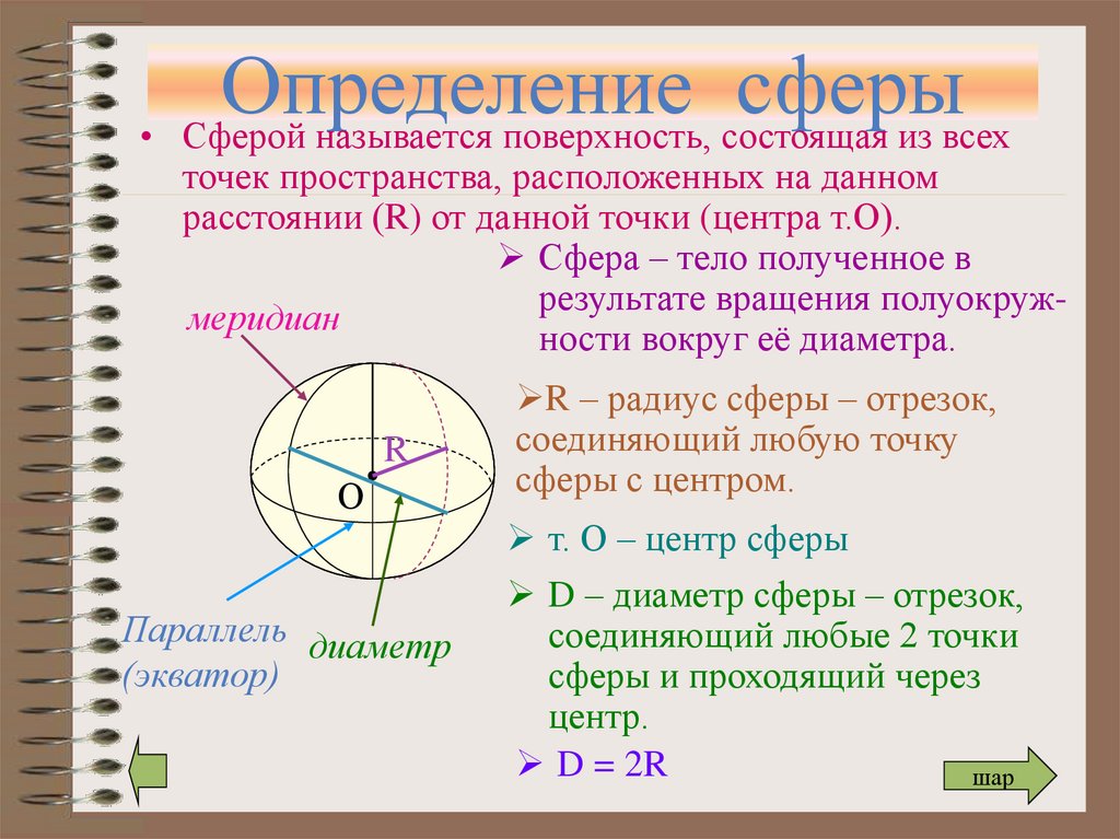 • Сферу нельзя развернуть на плоскость.• Опишем около сферы