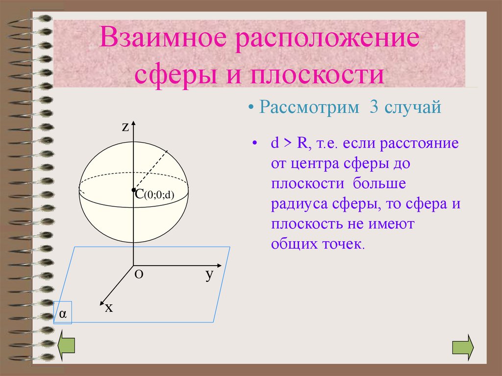 (х-х0)2 + (у-у0)2 + (z-z0)2=R2, а координаты