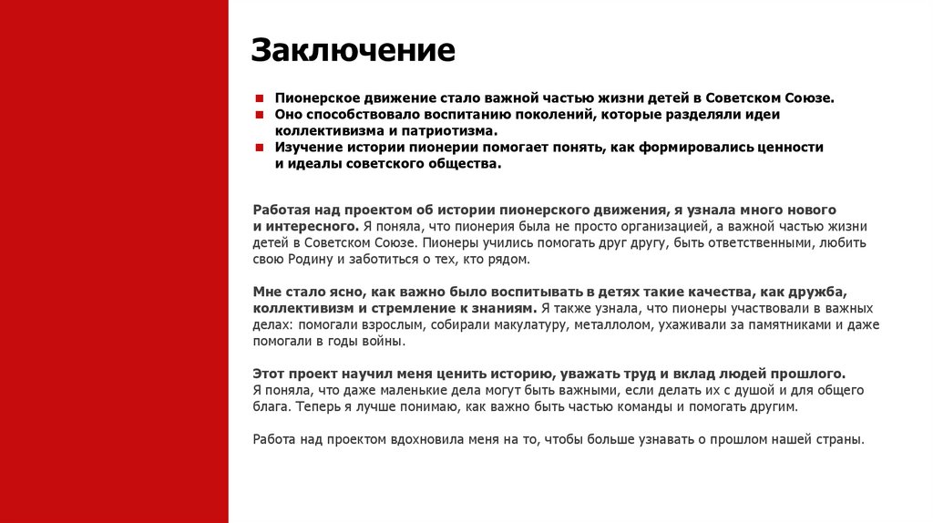 ЗаключениеПионерское движение стало важной частью жизни детей в Советском Союзе.