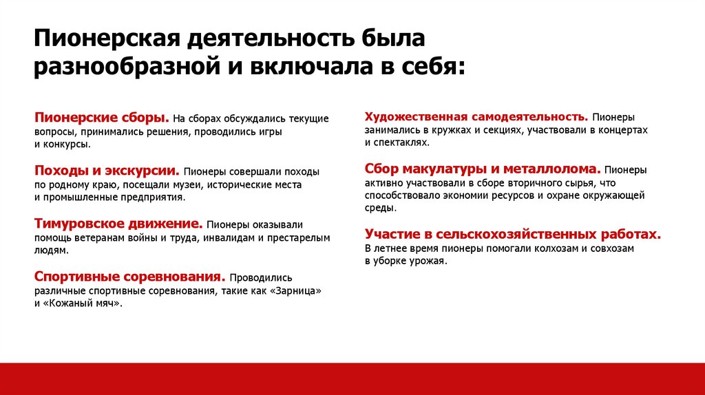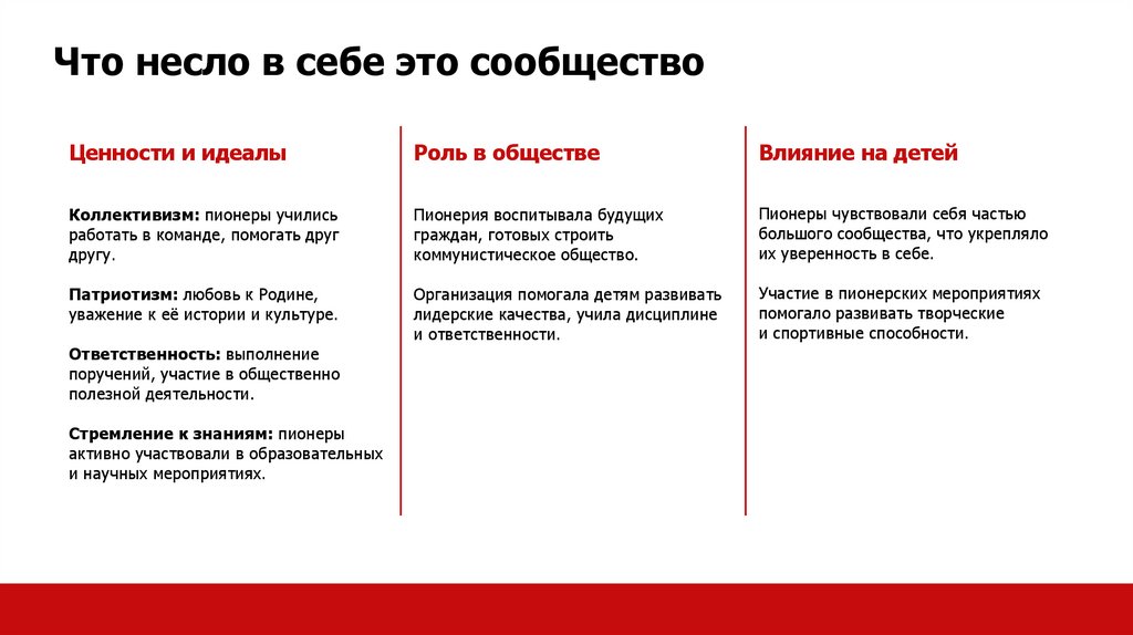 коллективизм и стремление к знаниям. Я также узнала, что пионеры участвовали в важных
