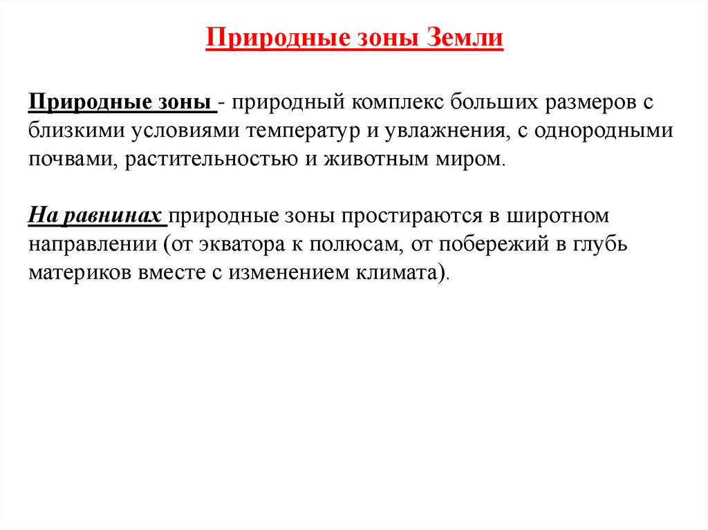 Природные зоны ЗемлиПриродные зоны - природный комплекс больших размеров с