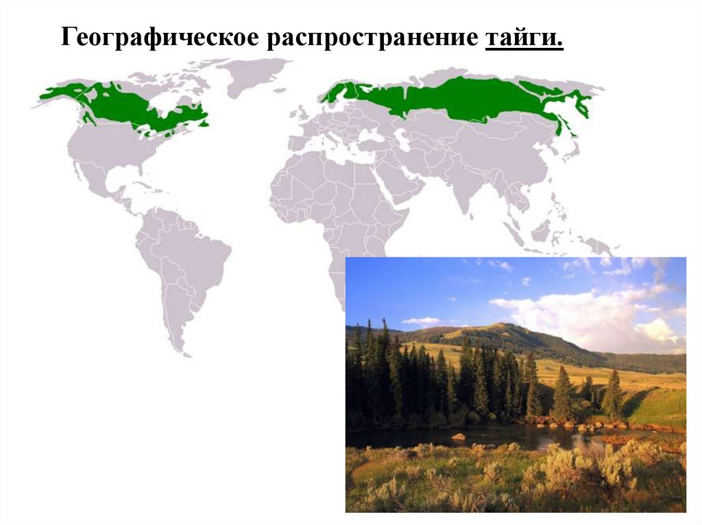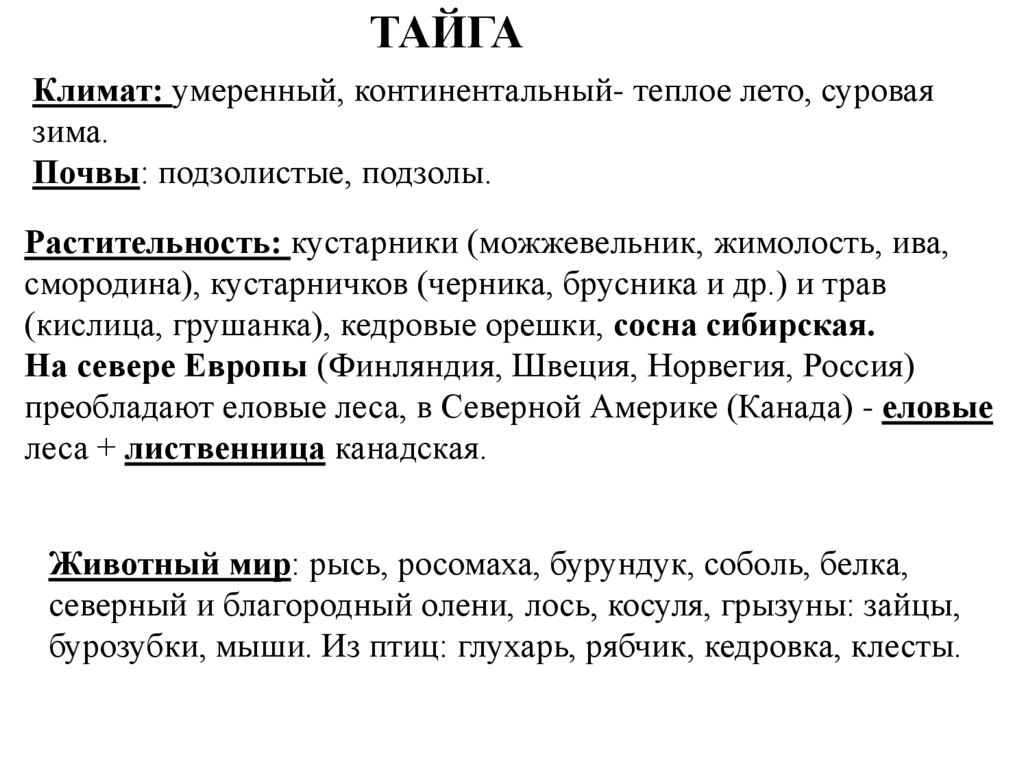 ТАЙГАКлимат: умеренный, континентальный- теплое лето, суровая