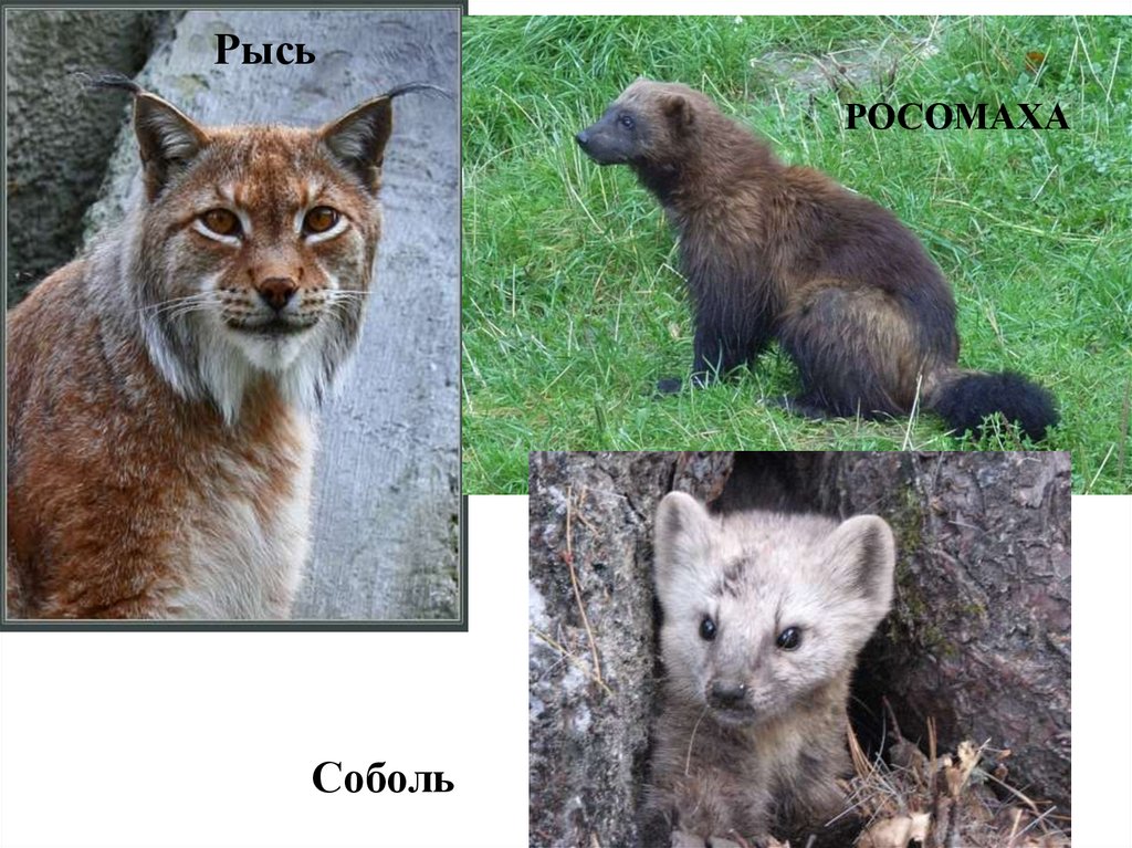 Животный мир: рысь, росомаха, бурундук, соболь, белка,