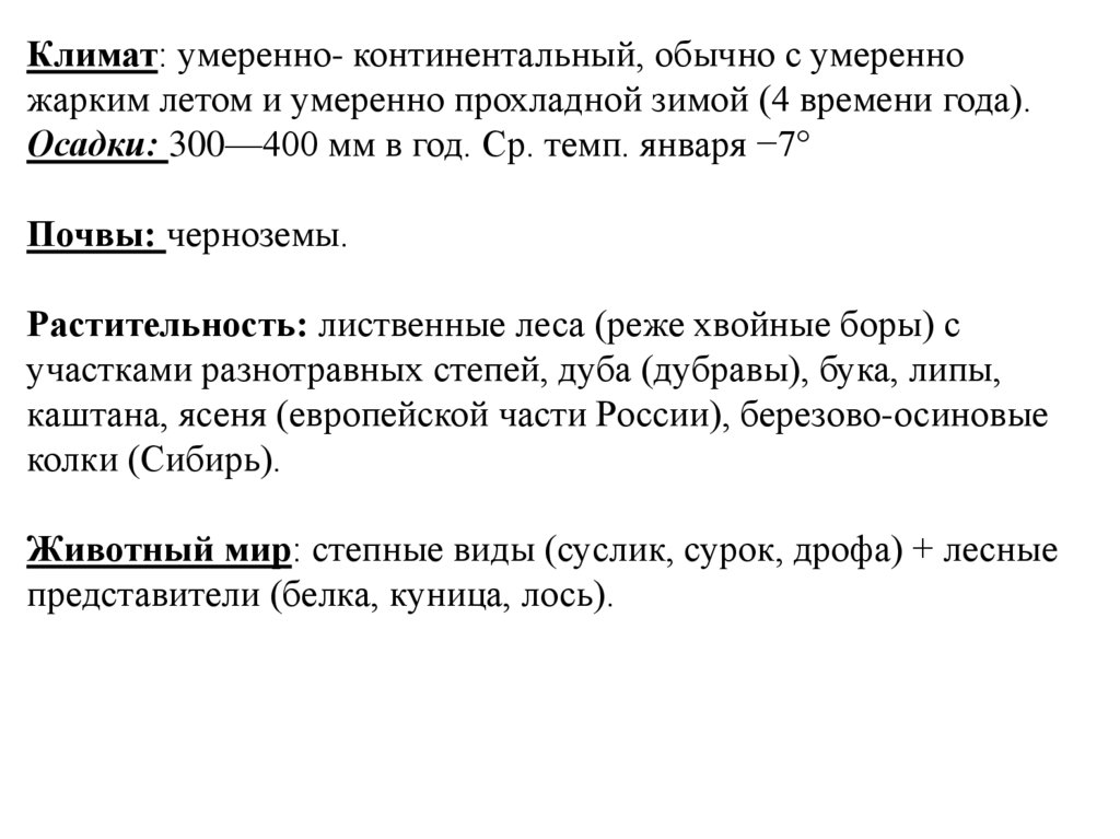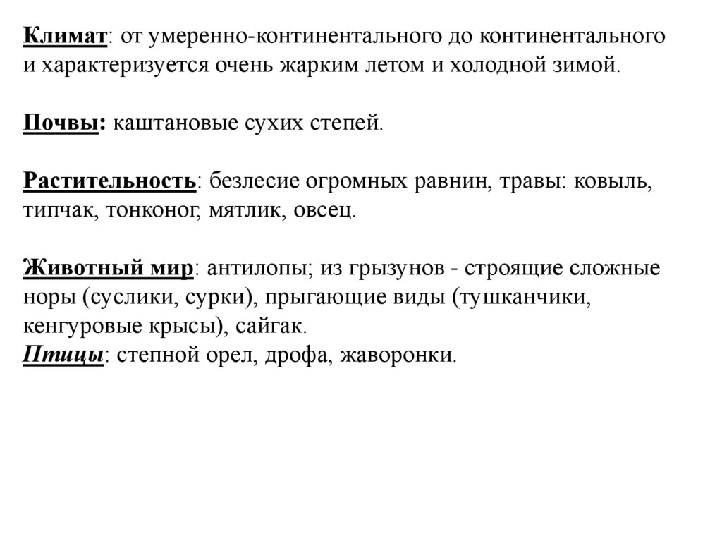 Растительность: безлесие огромных равнин, травы: ковыль,